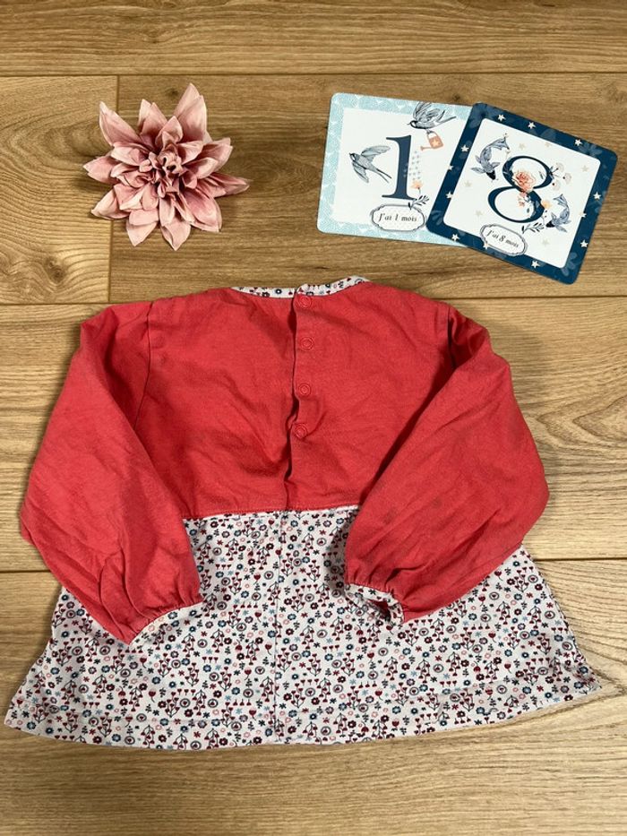 T shirt manches longues effet cache cœur corail et blanc Sucre D’orge 18 mois BE - photo numéro 6