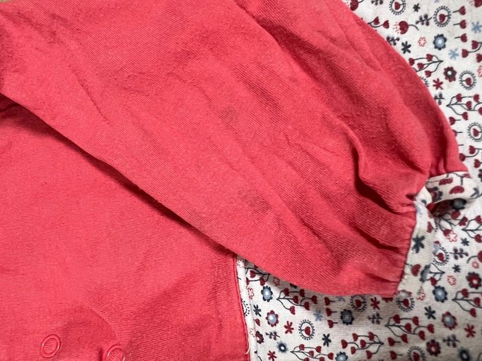 Joli t-shirt manches longues effet cache cœur corail et blanc Quelques taches peu visibles 18 mois / 81 cm #fille18mois #MMfille18mois