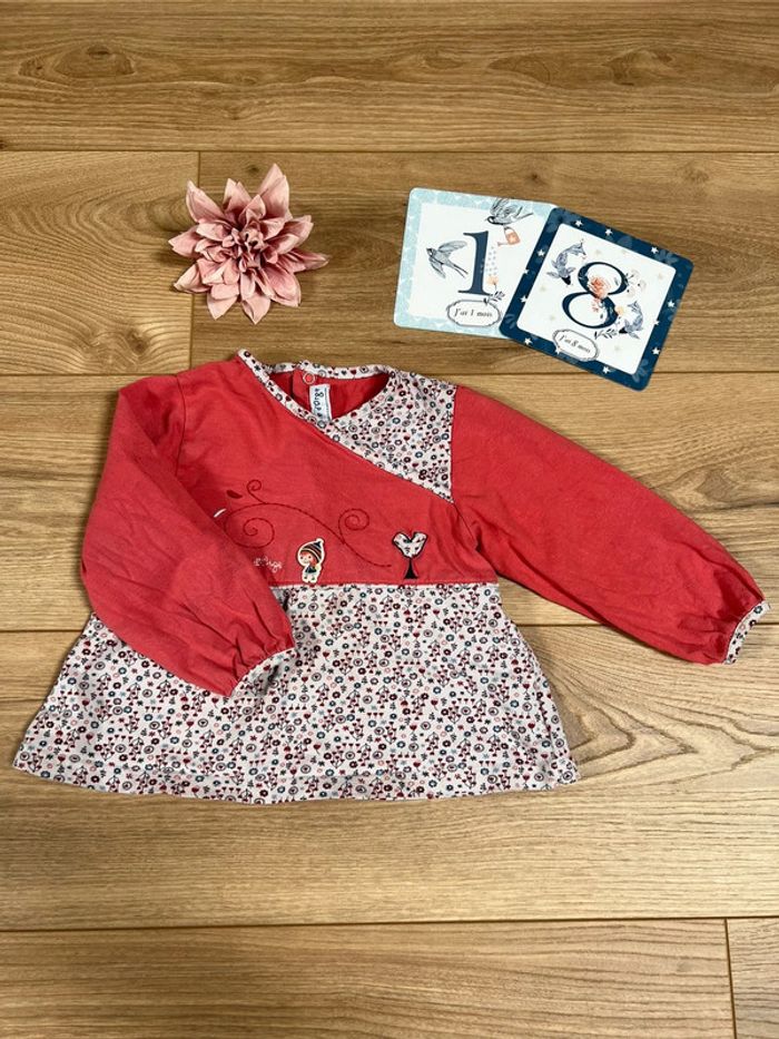 T shirt manches longues effet cache cœur corail et blanc Sucre D’orge 18 mois BE - photo numéro 1