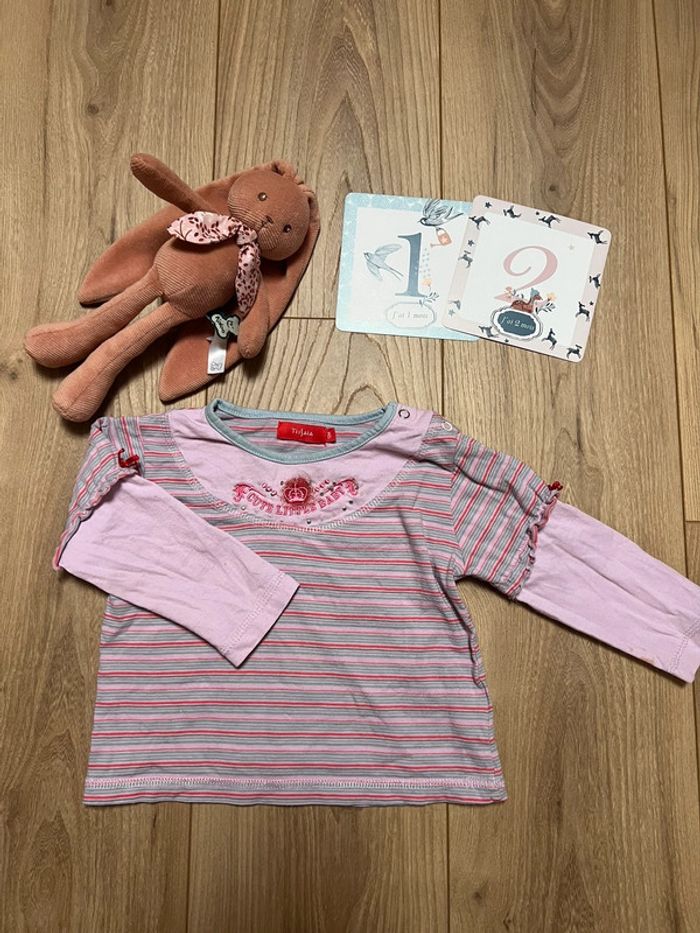 Joli t-shirt manches longues rose rayé 12 mois BE #fille12mois #MMfille12mois