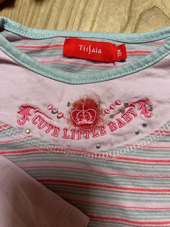 Joli t-shirt rose rayé Tissaia 12 mois BE - photo numéro 1