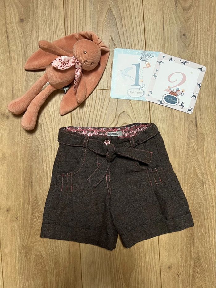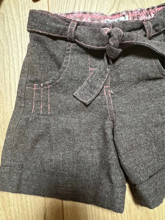 Joli short gris à coutures roses et ceinture 12 mois / 74 cm TBE #fille12mois #MMfille12mois
