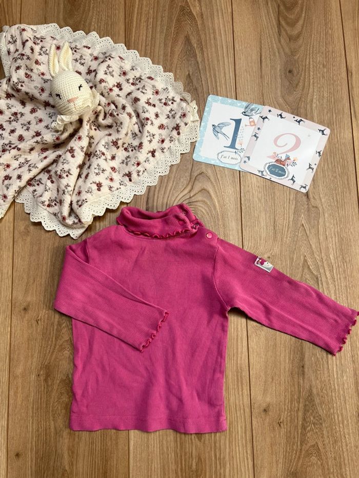 Joli pull fin col roulé rose 12 mois TBE - photo numéro 3