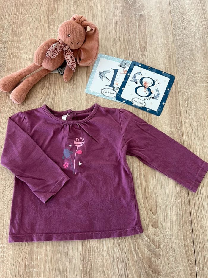 Joli t-shirt manches longues violet avec fleurs Taille 18 mois TBE #fille18mois #MMfille18mois