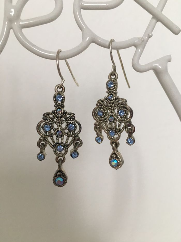 Boucles d’oreille argentées avec strass turquoise bon état