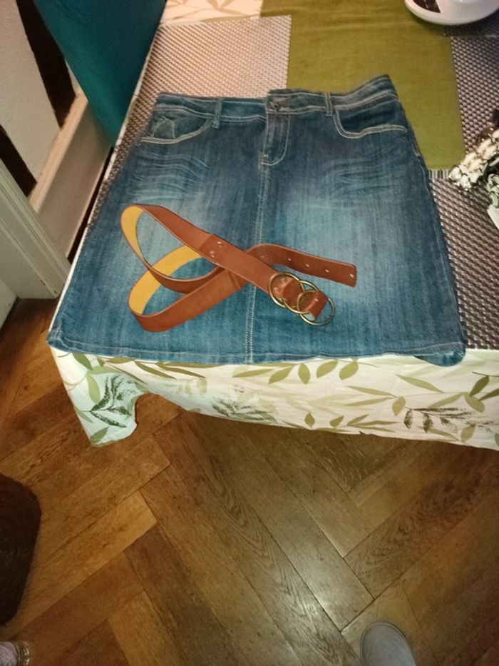 Jupe en jean 98% coton, avec ceinture cuir - photo numéro 2