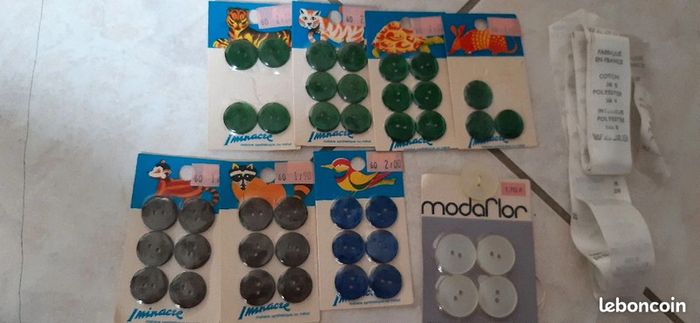 PRIX DE VENTE NON-NÉGOCIABLE Idéal pour les couturières Lot composé de : - lot de boutons divers tailles et couleurs - rouleau d'étiquette d'entretien - 2 lacets - une attache en plastique + tout ce que vous voyez sur les photos Lot à Vendre "ensemble"