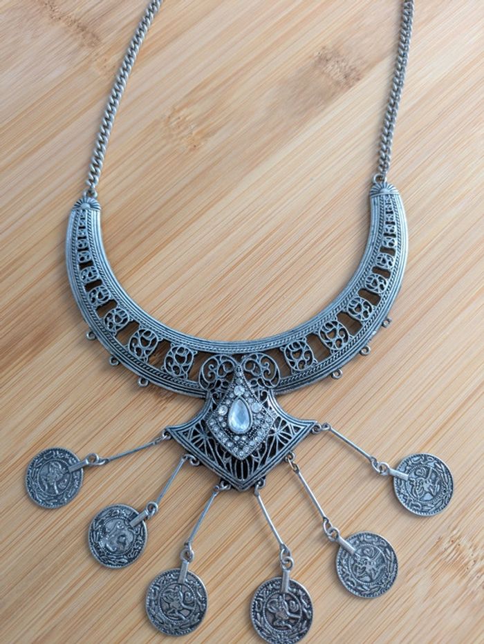Collier large chic avec petites pièces pendantes Marque claire's Porté voir état sur les photos Envoi uniquement via mondial relay Venez découvrir les autres articles de mon dressing - Vêtements femme, lingerie, vêtements bébé, pyjama, body, chaussons, haut ML et MC, gilet, Tee-shirt, collant, pull, jupe, robe, pantalon, legging, bonnet, grenouillère, bijoux, chaussures, accessoires, jouets, produits de beauté, divers articles... Toutes marques. N'hésitez pas à faire un lot pour optimiser les frais de port. J'ai aussi activé les réductions.