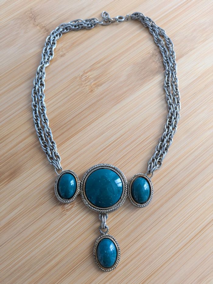 Collier large vintage style un peu gothique Couleurs argent vieilli et vert Porté quelques traces d'usure voir état sur les photos Envoi uniquement via mondial relay Venez découvrir les autres articles de mon dressing - Vêtements femme, lingerie, vêtements bébé, pyjama, body, chaussons, haut ML et MC, gilet, Tee-shirt, collant, pull, jupe, robe, pantalon, legging, bonnet, grenouillère, bijoux, chaussures, accessoires, jouets, produits de beauté, divers articles... Toutes marques. N'hésitez pas à faire un lot pour optimiser les frais de port. J'ai aussi activé les réductions.