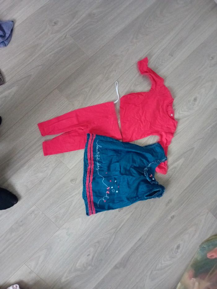 #taille12moiscindouille0115 #robefille Robe avec son pull assorti et son legging #pluscollection