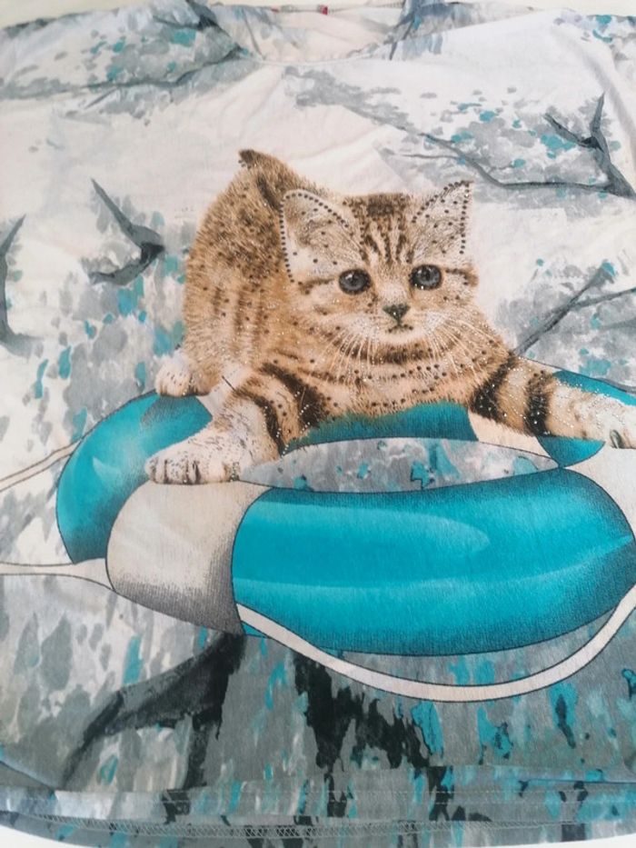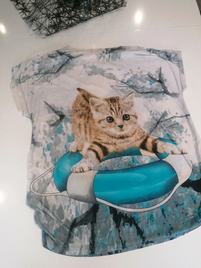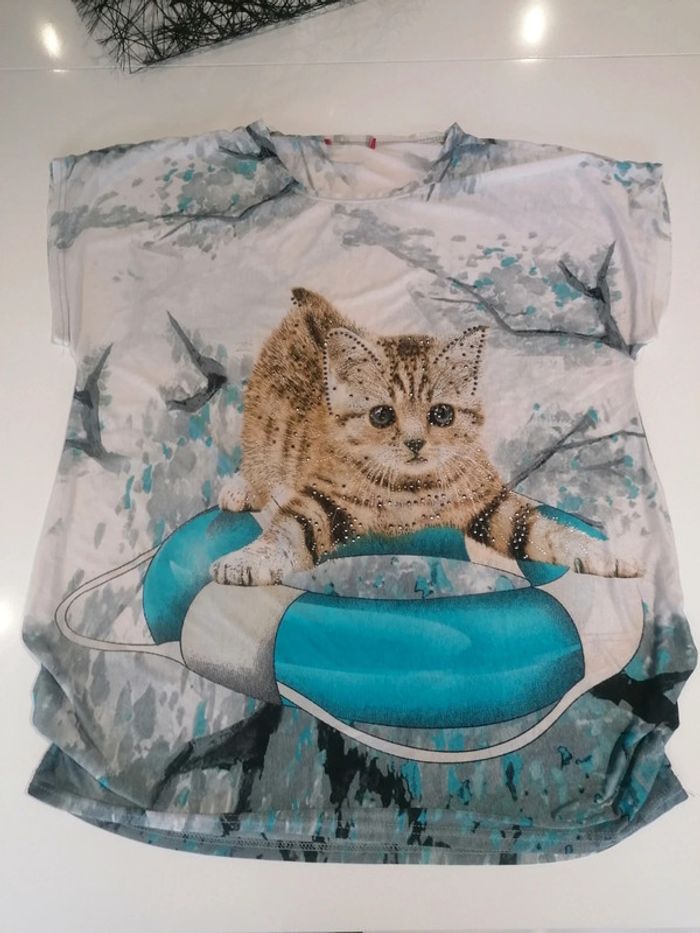 Thee shirt Taille unique Large Leger Avec strass brillant Motif chat Uniquement mondial relay ⚠️📦