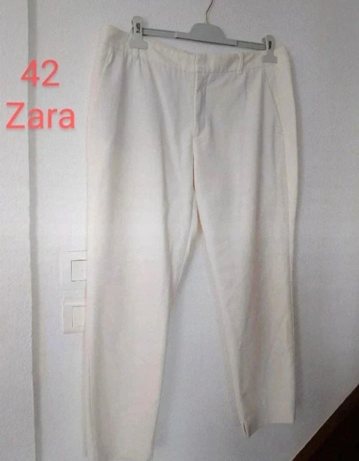 Beaucoup d'élégance pour ce pantalon femme taille 42. Marque ZARA. En excellent état Couleur crème. Tissu de qualité. Poches plaquées. #patriciaponziotaille42 Longueur 92,5 cm