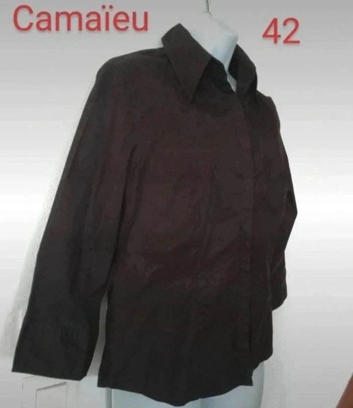 Superbe chemise femme taille 42 Aisselle à aisselle 48 cm Marque CAMAÏEU. Boutons cachés Couleur marron foncé. En excellent état #patriciaponziotaille42 Longueur 59 cm