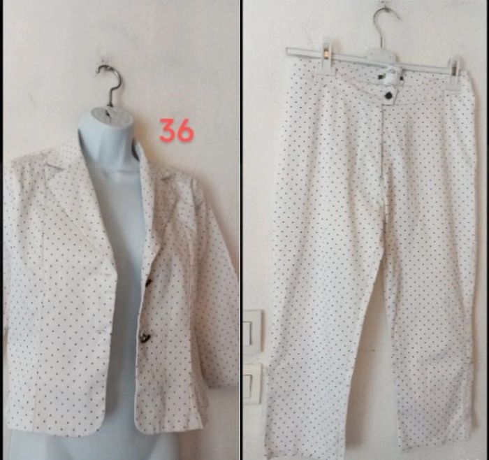 Superbe tailleur coton veste courte et pantacourt femme taille 36 Marque CLOARICE PARIS. Neuf Blanc à pois noir #patriciaponziotaille36 Longueur pantacourt 74 cm Longueur veste 50 cm