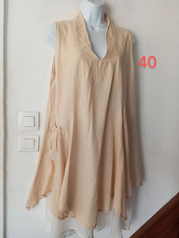 Superbe robe ample en coton femme taille 40 Couleur beige saumonné. En excellent état #patriciaponziotaille40 Longueur 1.02