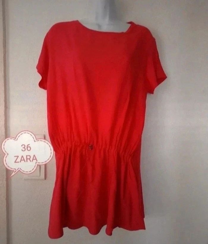 Superbe tunique longue ou robe courte femme en taille 36 Serrage taille . Couleur rouge. Zara Légère pour l'été très belle qualité de tissu. En excellent état comme neuve. #patriciaponziotaille36 Longueur 76 cm