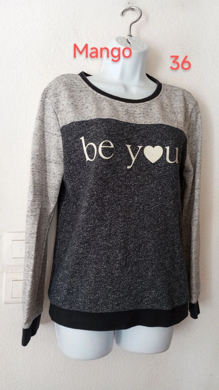 Superbe sweat manches longues femme 36 Marque MANGO. En excellent état Couleur gris clair, noir chiné, blanc #patriciaponziotaille36 Longueur 60 cm