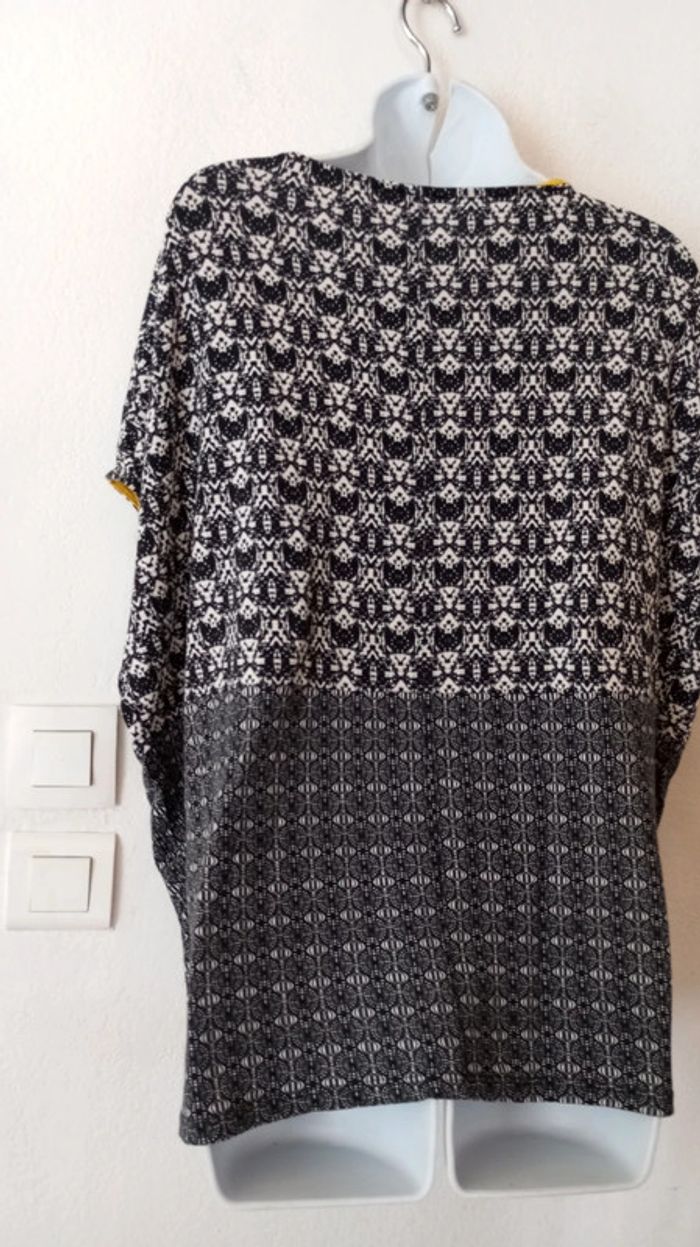 Blouse large manches courtes femme taille 52/54. En excellent état. Aisselle à aisselle 62 cm Marque CAMAÏEU. Couleur noir, blanc. #patriciaponziotaille52 #patriciaponziotaille54 Longueur 67 cm