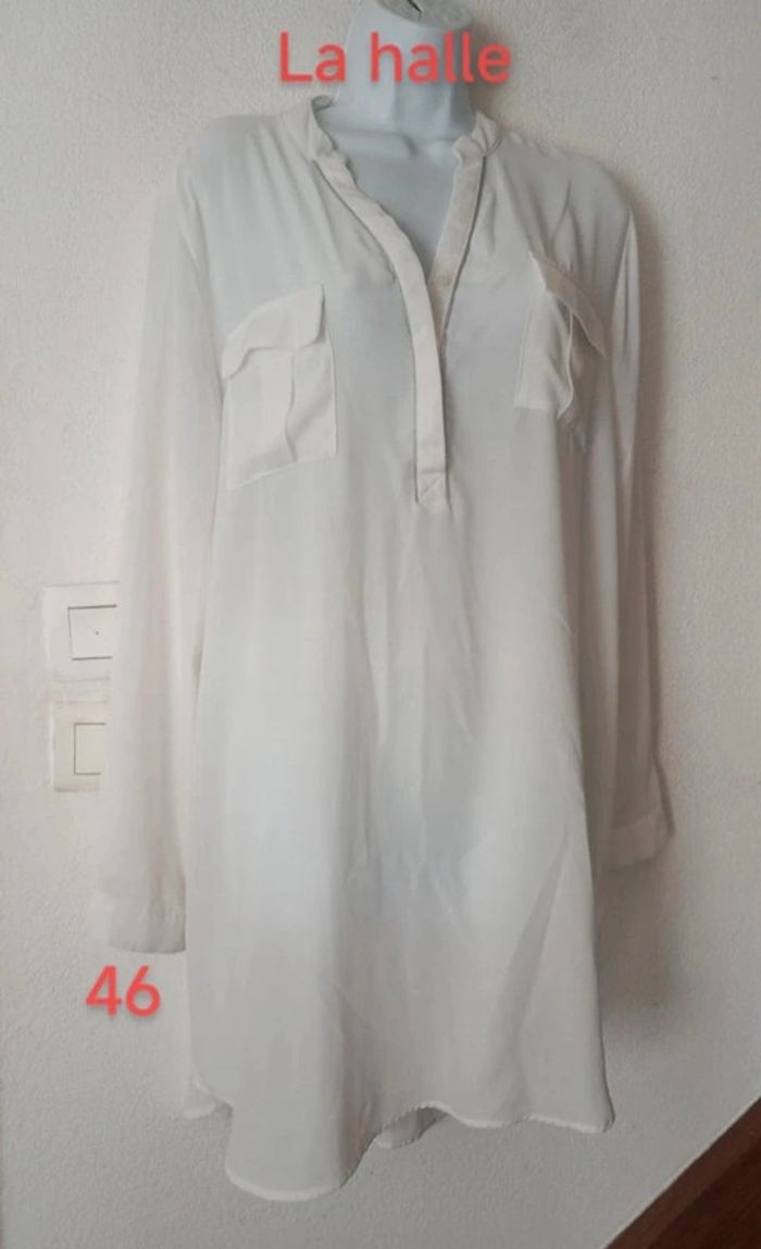 Superbe blouse très longue femme46 Marque LA HALLE. En excellent état comme neuve. Blanche #patriciaponziotaille46 Longueur devant 85 cm, dos 90 cm