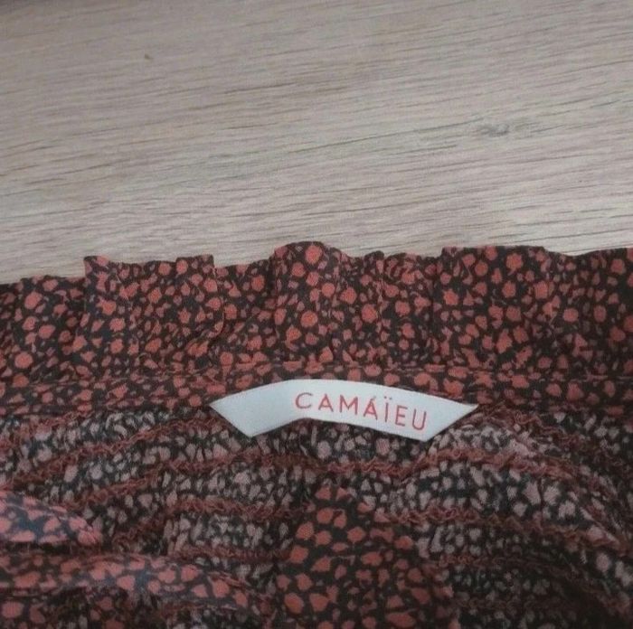 Superbe blouse fluide femme taille 38 Marque CAMAÏEU. Neuve. Couleur ocre foncé, noir Manches , épaules et haut du dos smokés #patriciaponziotaille38 Longueur 62 cm