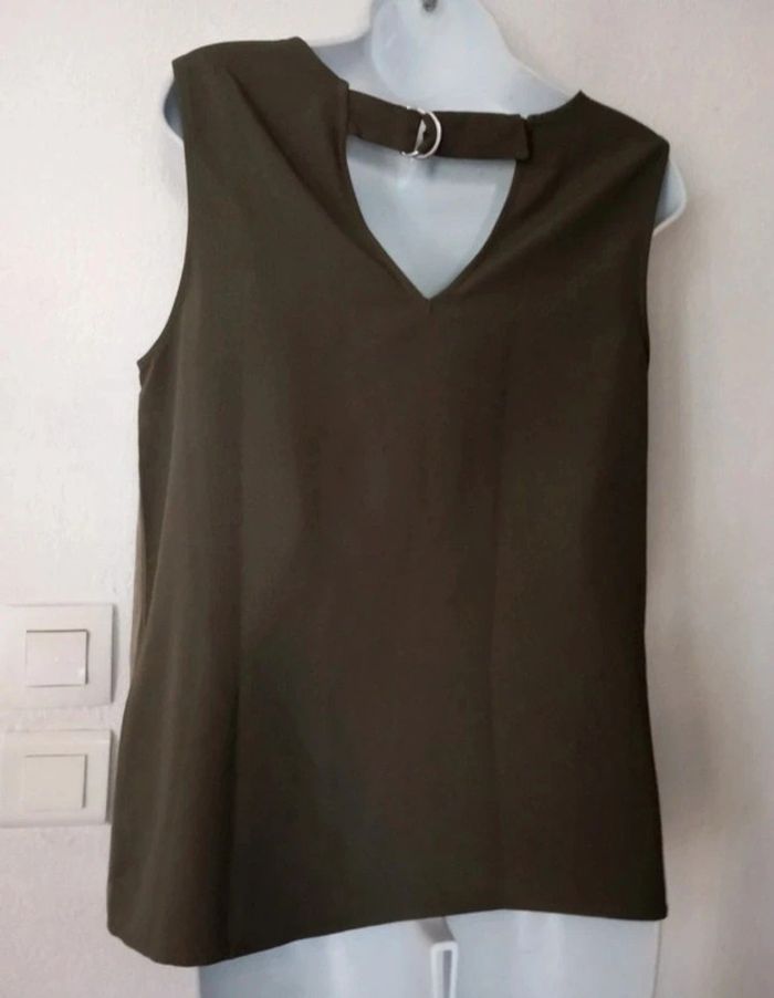 Superbe blouse sans manche longue femme taille 38 Marque KIABI. Neuve Couleur kaki, bi matière #patriciaponziotaille38 Longueur 66 cm