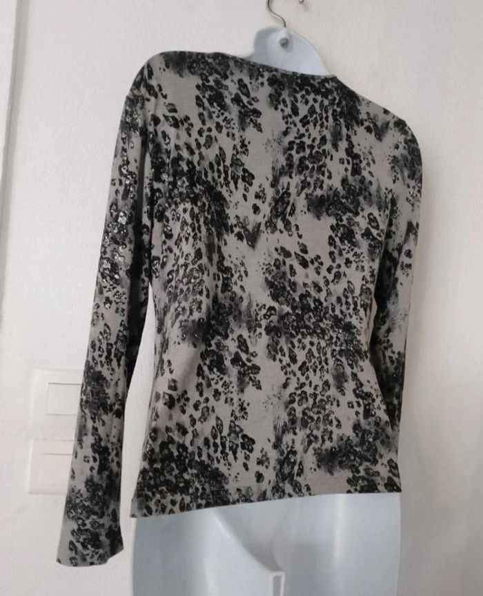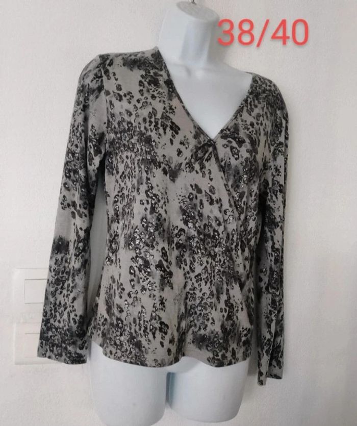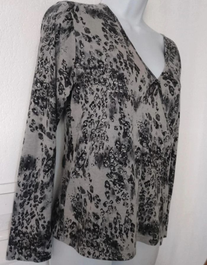 Superbe haut non fluide femme taille 38/40 Aisselle à aisselle 45 cm Couleur gris & argenté. En TBE #patriciaponziotaille38 #patriciaponziotaille40 Longueur 56,5 cm
