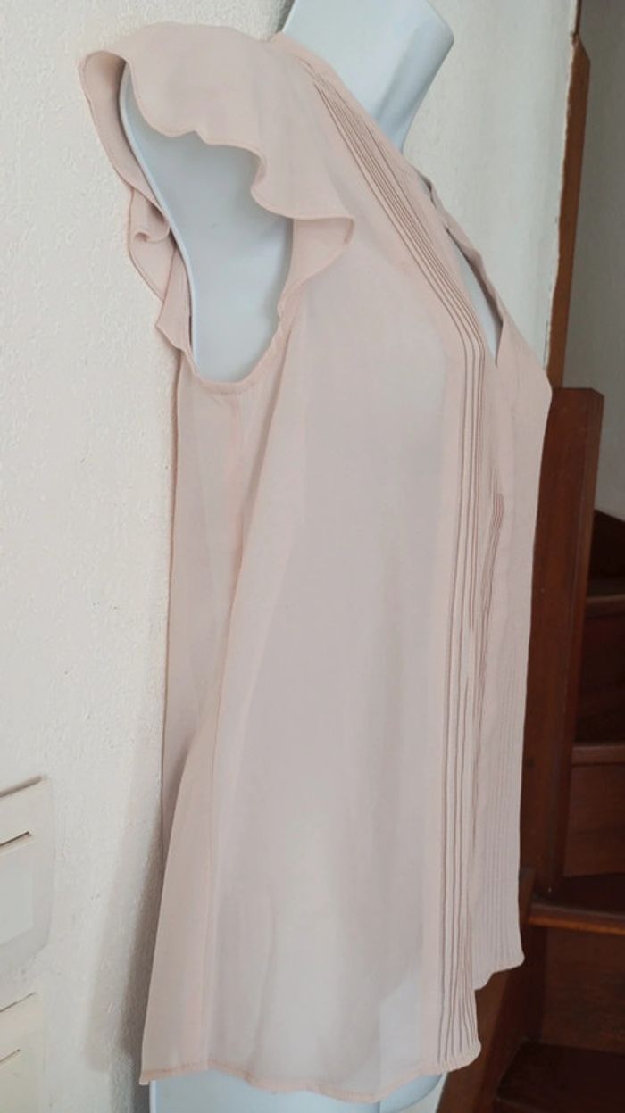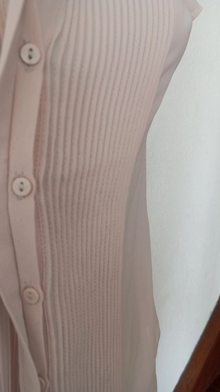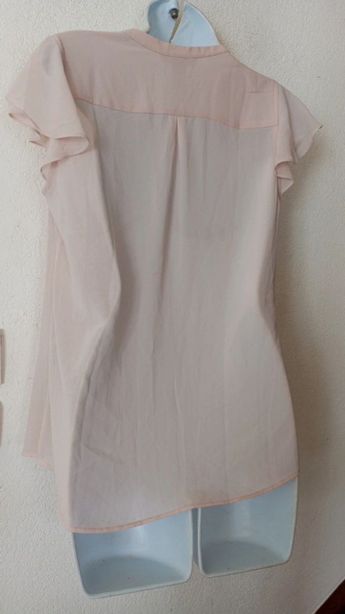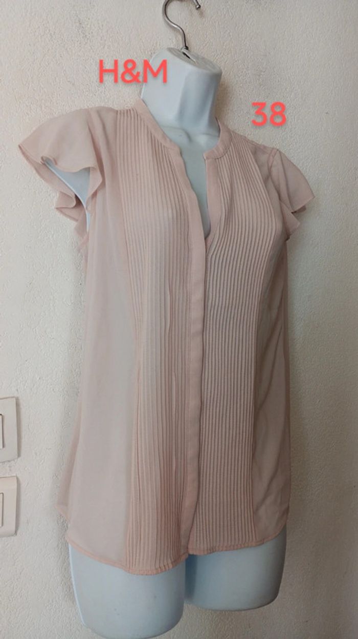 Superbe chemise voile manches courtes femme 38, boutons cachés En excellent état Marque H&M. Couleur saumon clair #patriciaponziotaille38 Longueur 63 cm