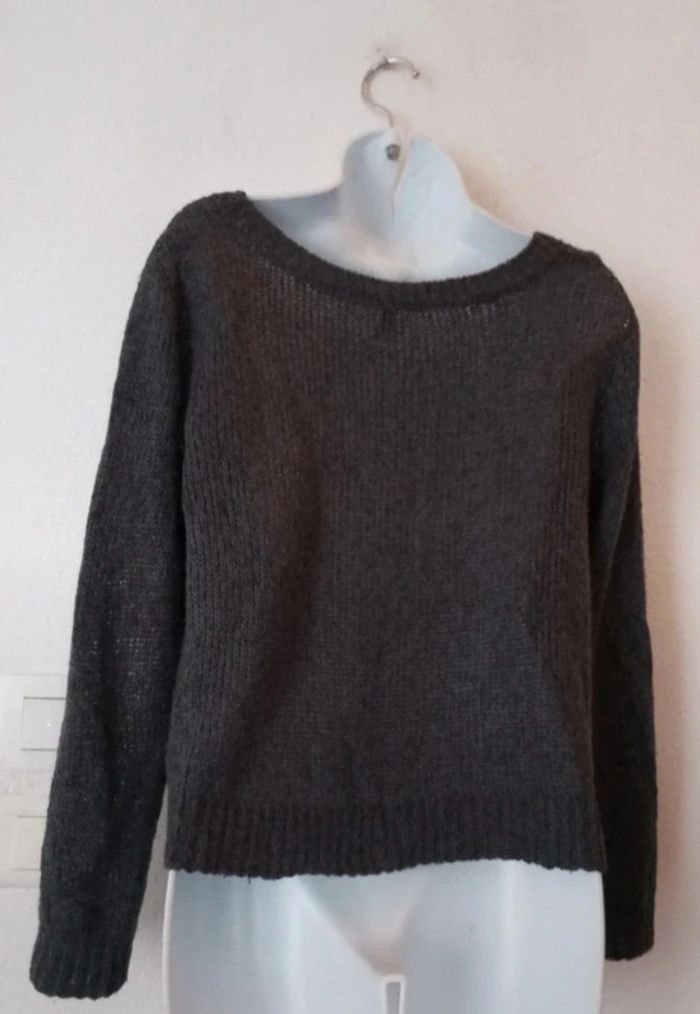 Superbe pull court avec laine femme 38 Marque H&M. Gris foncé. En excellent état #patriciaponziotaille38 Longueur 50 cm
