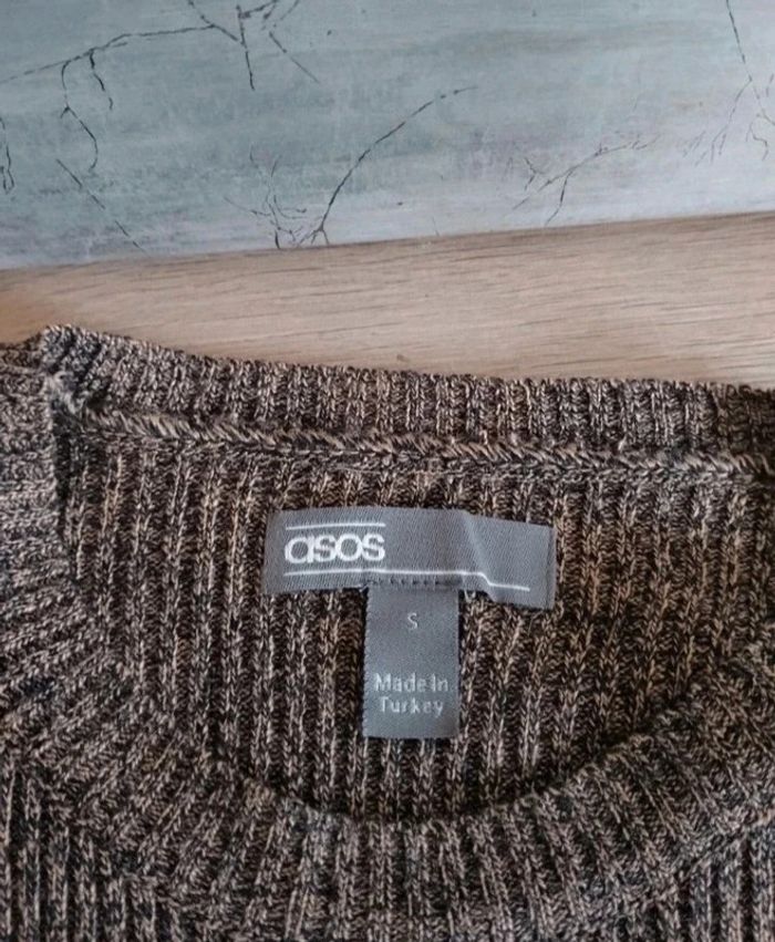 Superbe pull long en maille fine femme taille 36 Marque ASOS. Neuf Couleur marron noir. #patriciaponziotaille36 Longueur 69 cm
