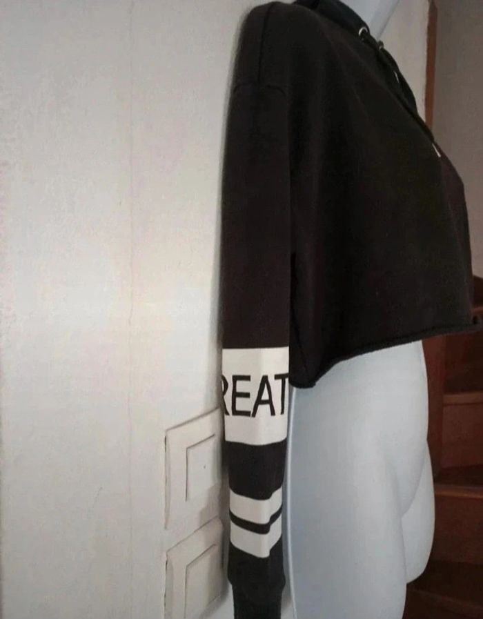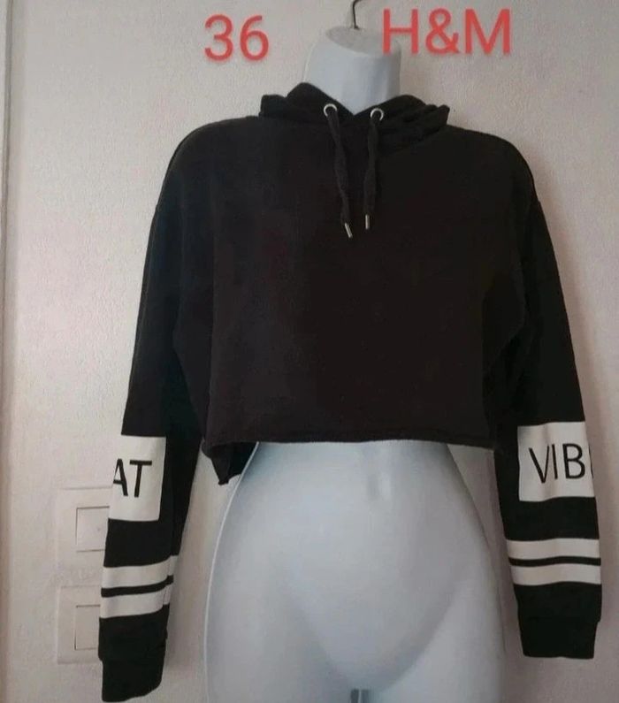Superbe sweat court à capuche femme 36 En TBE. Marque H&M Couleur noir foncé. #patriciaponziotaille36 Longueur 39 cm.