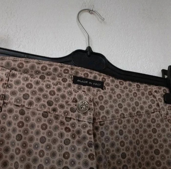 Superbe pantalon femme taille 40 En excellent état comme neuf Marque MADE IN ITALY Couleur beige foncé, motifs marron #patriciaponziotaille40 Longueur 98,5 cm