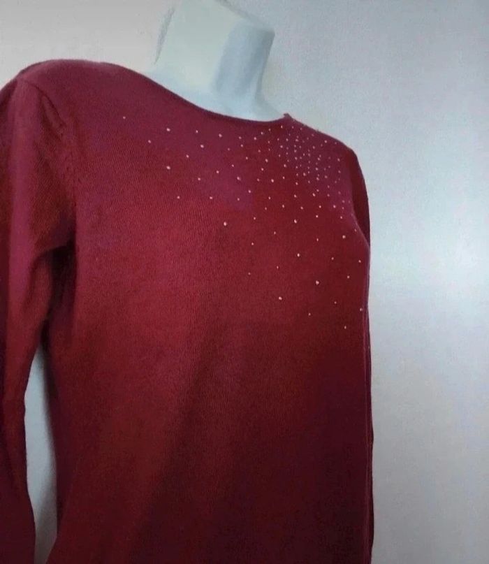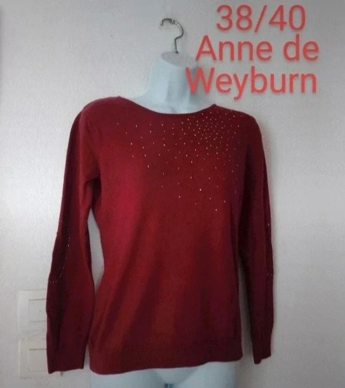 Superbe pull avec rivets dorés femme 38/40 En excellent état , très doux Marque ANNE DE WEYBURN de la REDOUTE. Couleur bordeaux #patriciaponziotaille38 #patriciaponziotaille40 Longueur 63 cm