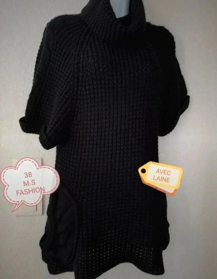 Pull long grosses mailles avec laine ou surpull avec laine femme taille 38 Aisselle à aisselle 44 cm Col roulé. Couleur noir foncé Avec poches. En très bon état Marque F. S FASHION #patriciaponziotaille38 Longueur 73 cm