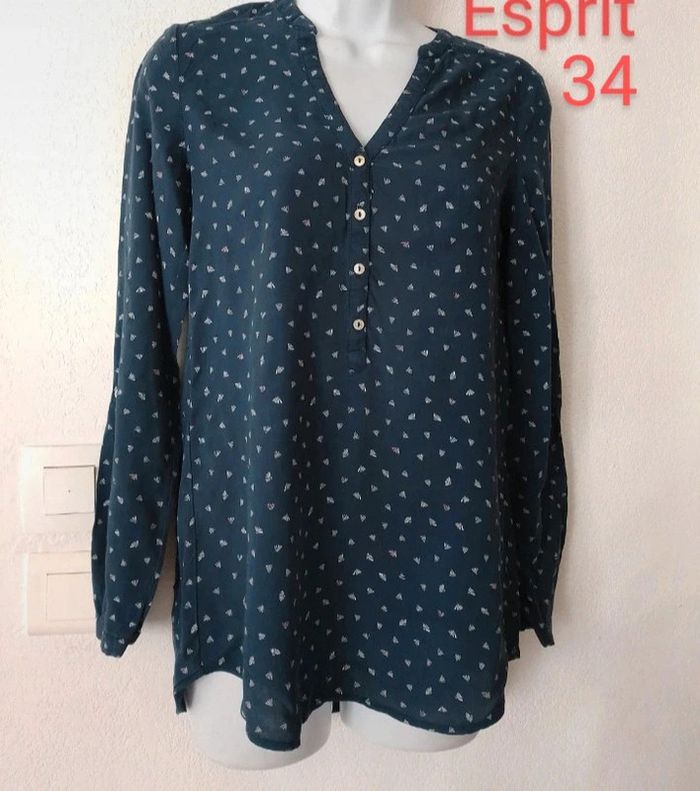 Superbe blouse femme taille 34 Marque ESPRIT En excellent état. Manches retroussables Couleur bleu Longueur devant 67 cm, dos 73 cm. Vous pouvez cliquer sur le lien suivant pour voir tout mon 34 #patriciaponziotaille34