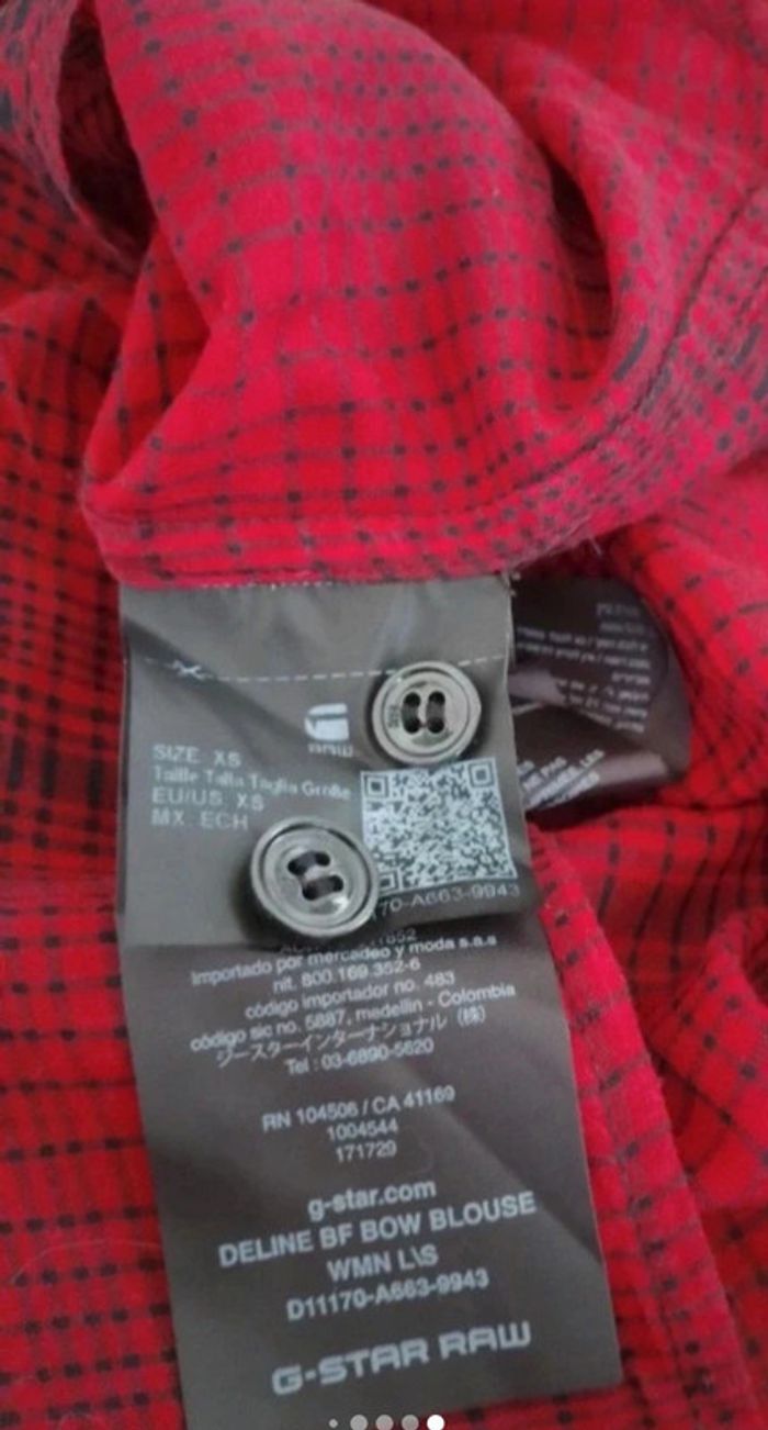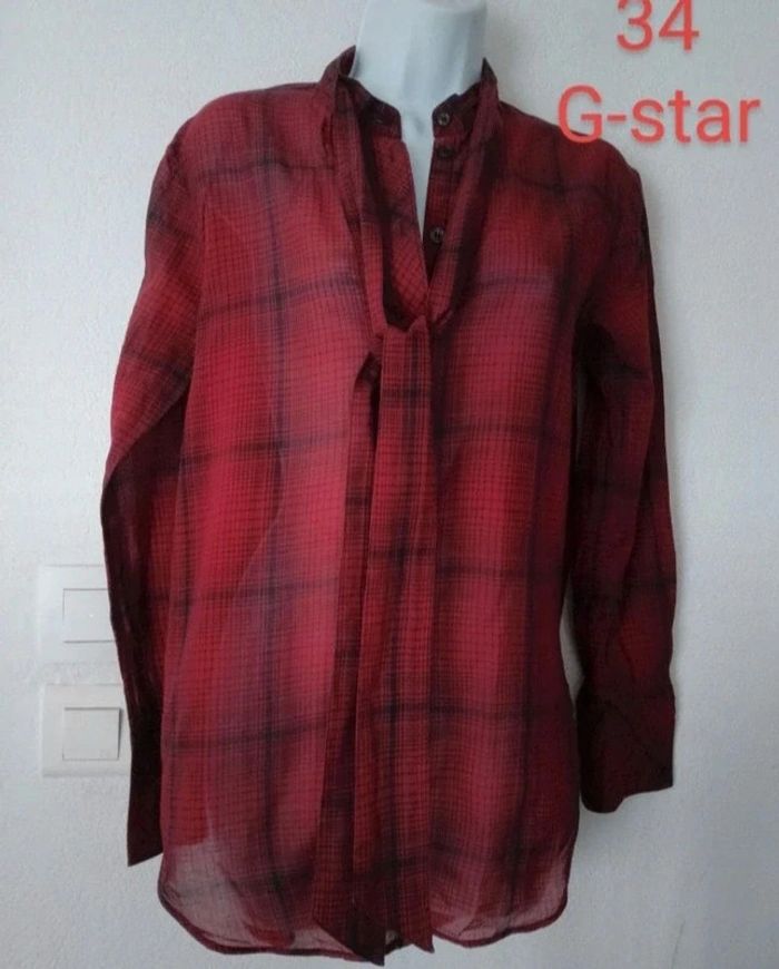 Superbe chemise femme taille 34 Marque G-STAR. En excellent état comme neuve. Couleur rouge noir Vous pouvez cliquer sur le lien suivant pour voir tout mon 34 #patriciaponziotaille34 Longueur 74 cm.