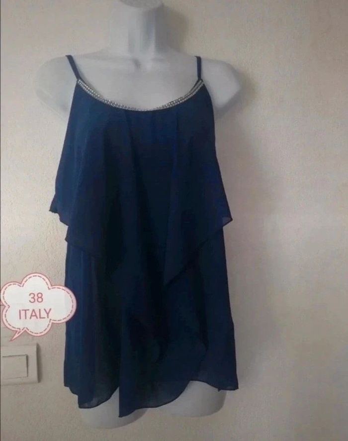 Superbe haut femme en taille 38 En excellent état. Fabrication ITALY. Couleur très beau bleu.Vous pouvez cliquer sur le lien ci-dessous pour voir tout mon 38 #patriciaponziotaille38