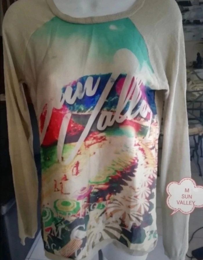 Très beau haut femme, taille 38 Marque SUN VALLEY. En excellent état. Couleur mastic dos, haut et manches en maille très fine . Devant très doux comme de la soie. Vous pouvez cliquer sur le lien ci-dessous pour voir tout mon 38 #patriciaponziotaille38