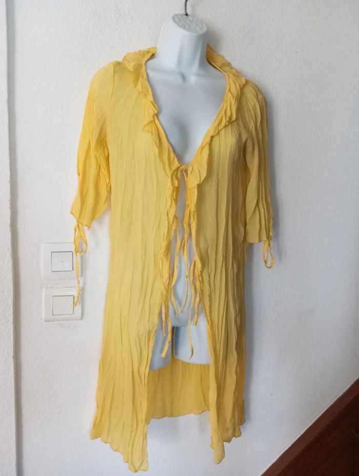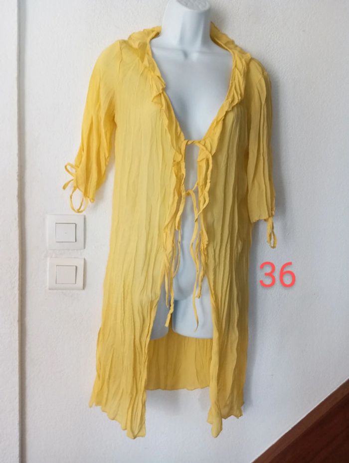 #patriciaponziotaille36 Chemise longue de plage femme 36. Idéal sur un maillot En très bon état. Couleur jaune Longueur 86 cm. Vous pouvez cliquer sur le lien ci-dessus pour voir tout mon 36