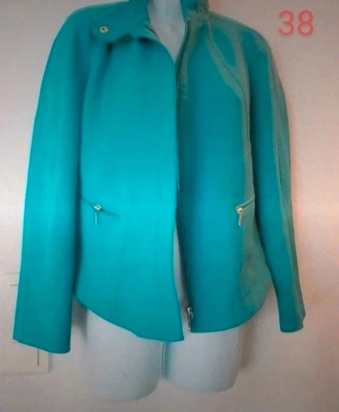 Superbe veste zippée bleue femme en taille 38. Marque MANOUKIAN. En excellent état comme neuve. Longueur 56 cm. Vous pouvez cliquer sur le lien ci-dessus pour voir tout mon 38 #patriciaponziotaille38