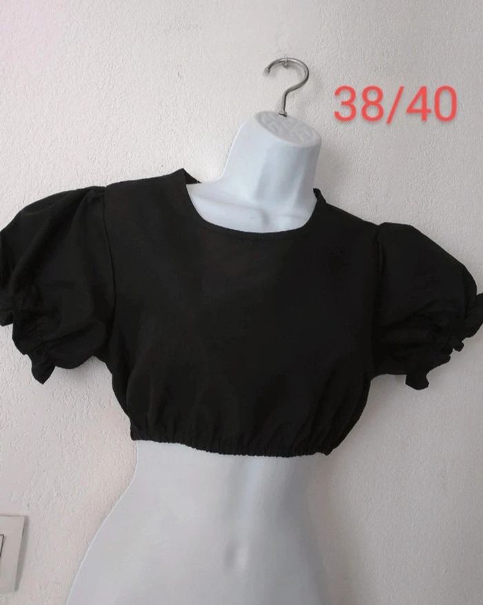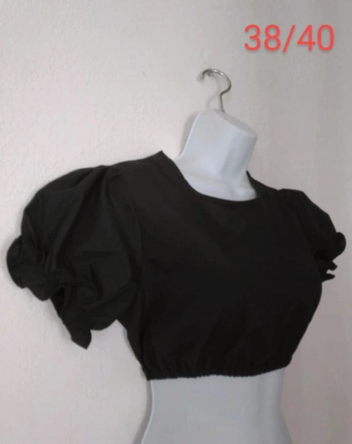 #patriciaponziotaille40 #patriciaponziotaille38 Top court femme taille 38.40 (Aisselle à aisselle 45 cm. Manches bouffantes et bas élastique. Couleur noir foncé. En excellent état comme neuf. Vous pouvez cliquer sur le lien ci-dessus pour voir tout mon 38 &40