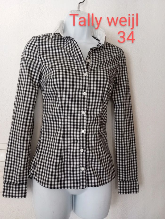 Superbe chemise manches longues femme taille 34 Marque TALLY WEIJL. En excellent état Couleur noir blanc Longueur 63 cm. Vous pouvez cliquer sur le lien suivant pour voir tout mon 34 #patriciaponziotaille34
