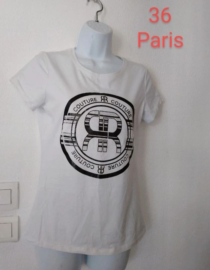 #patriciaponziotaille36 Superbe tee shirt avec strass femme taille 36 Marque AMY & CLO PARIS. Couleur blanc, motif noir foncé. Neuf. Vous pouvez cliquer sur le lien ci-dessus pour voir tout mon 36