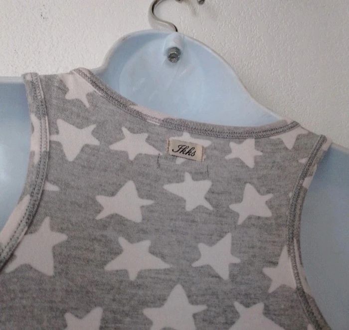 Débardeur femme 34. Marque IKKS. En très bon état. Couleur gris blanc Vous pouvez cliquer sur le lien ci-dessous pour voir tout mon 34 #patriciaponziotaille34