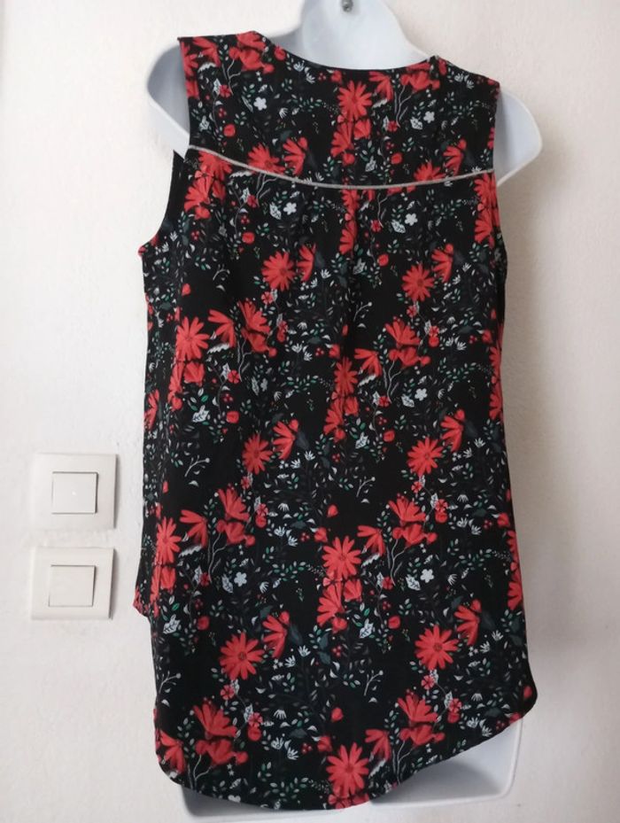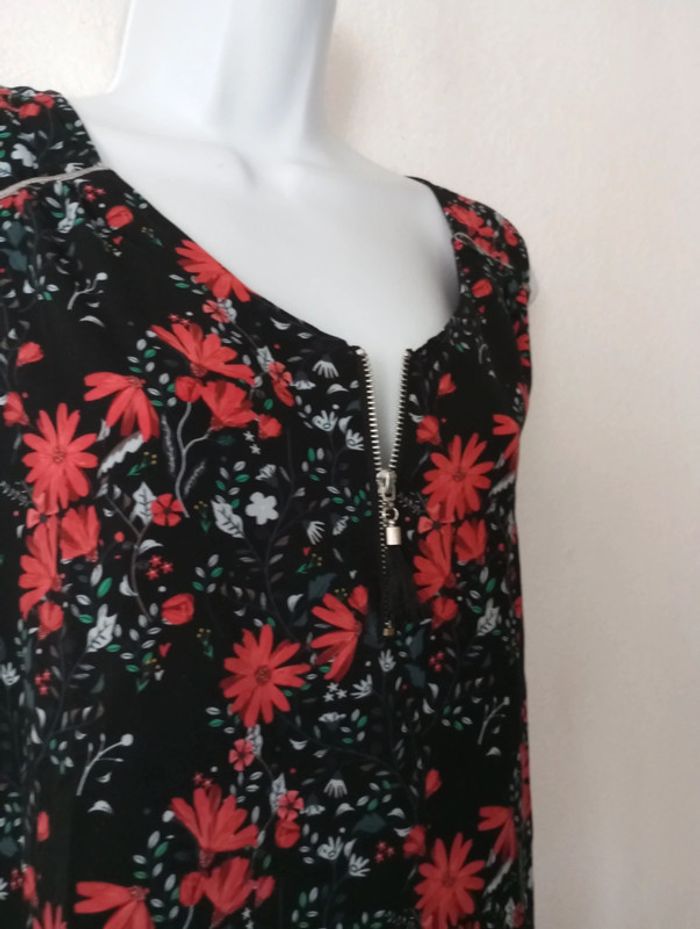 Superbe blouse sans manche imprimé floral femme taille 38 Vous pouvez cliquer sur le lien suivant pour voir tout mon 38 #patriciaponziotaille38 Marque LA HALLE . En excellent état comme neuf Fond noir, motifs multicolores Longueur dos 67 cm, devant 59 cm