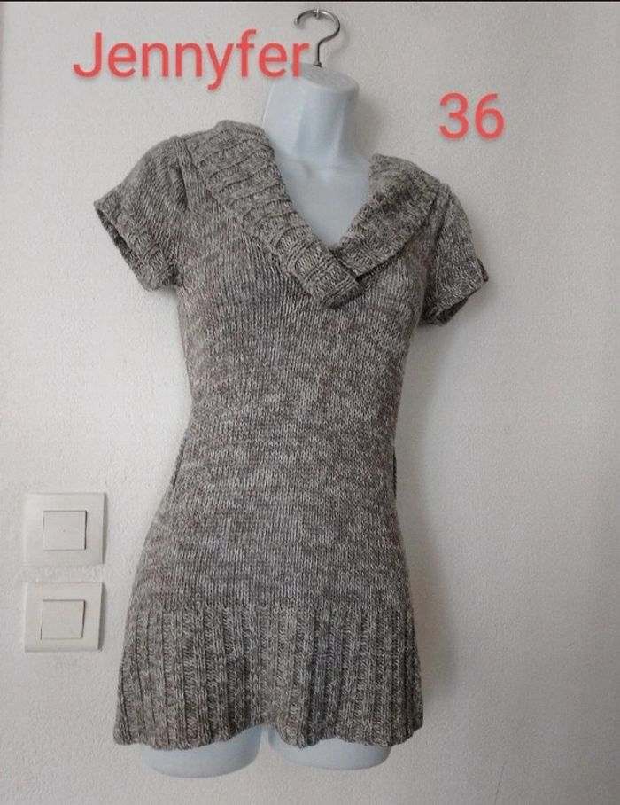 Superbe pull long manches courtes femme taille 36 Marque JENNYFER Couleur gris blanc. En très bon état Longueur 69 cm. Vous pouvez cliquer sur le lien suivant pour voir tout mon 36 #patriciaponziotaille36