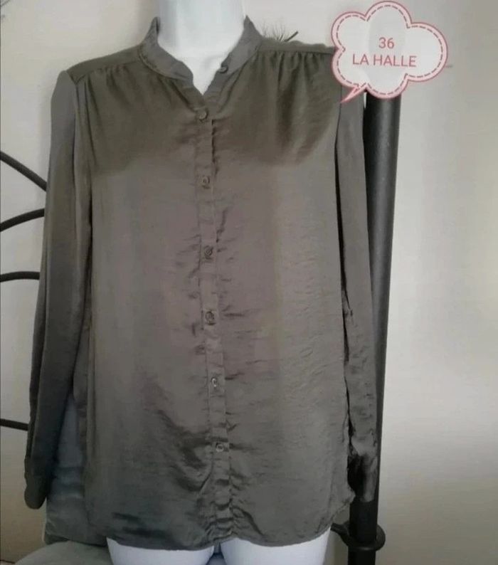 Superbe chemisier femme taille 36 Marque LA HALLE. En excellent état. Couleur kaki foncé. Aspect doux et satiné. Vous pouvez cliquer sur le lien ci-dessous pour voir tout 36 #patriciaponziotaille36