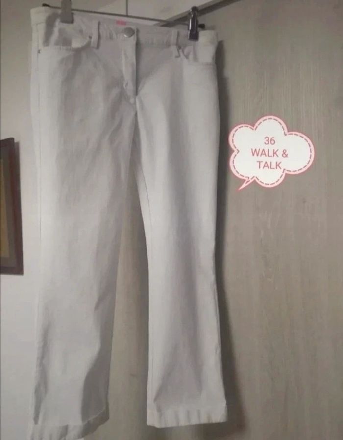 #patriciaponziotaille36 pantacourt femme en taille 36.très agréable à porter. Couleur blanc. Marque WALK & TALK. En excellent état .Vous pouvez cliquer sur le lien ci-dessus pour voir tout mon 36