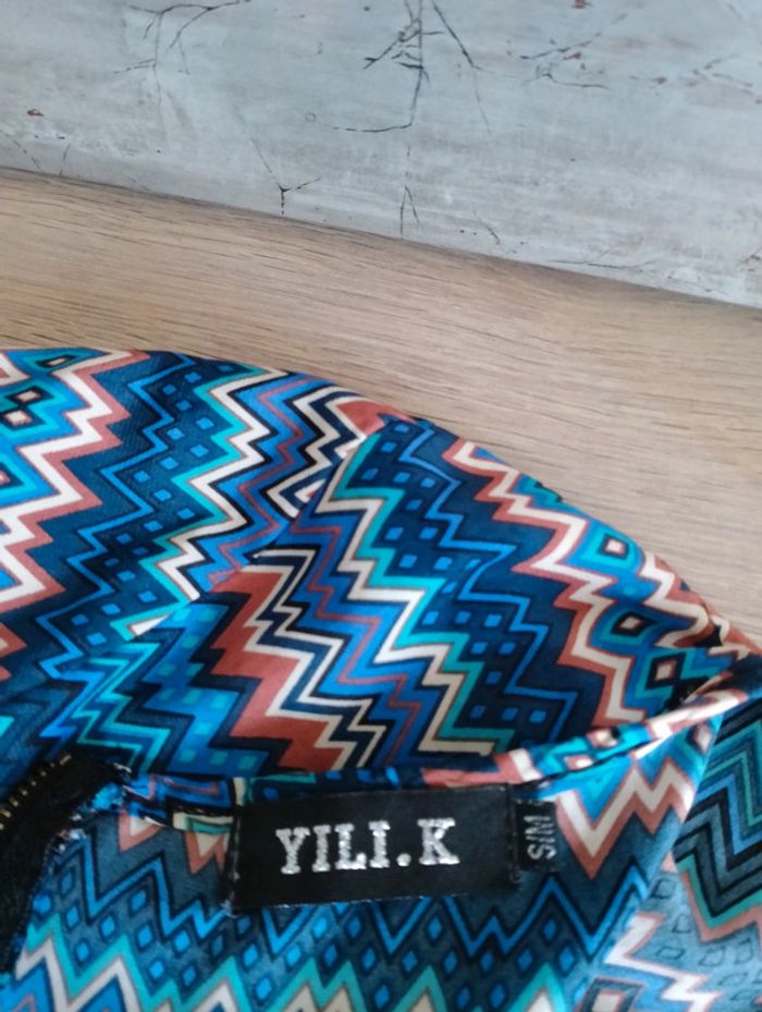#patriciaponziotaille38 Superbe robe large courte ou tunique longue femme 38/40. Aisselle à aisselle 52 cm . Longueur 75,5 cm. En excellent état. Manches 3/4. Marque YILI.K.Vous pouvez cliquer sur le lien ci-dessus pour voir tout mon 38