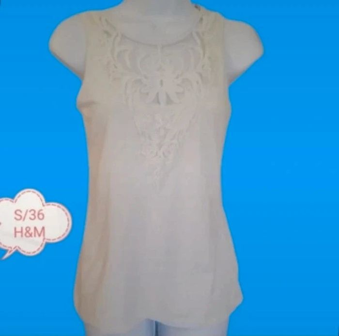 #patriciaponziotaille36 Superbe débardeur femme, taille 36. Avec dentelle devant. Excellent état. Couleur blanc. Marque H&M.Vous pouvez cliquer sur le lien ci-dessus pour voir tout mon 36