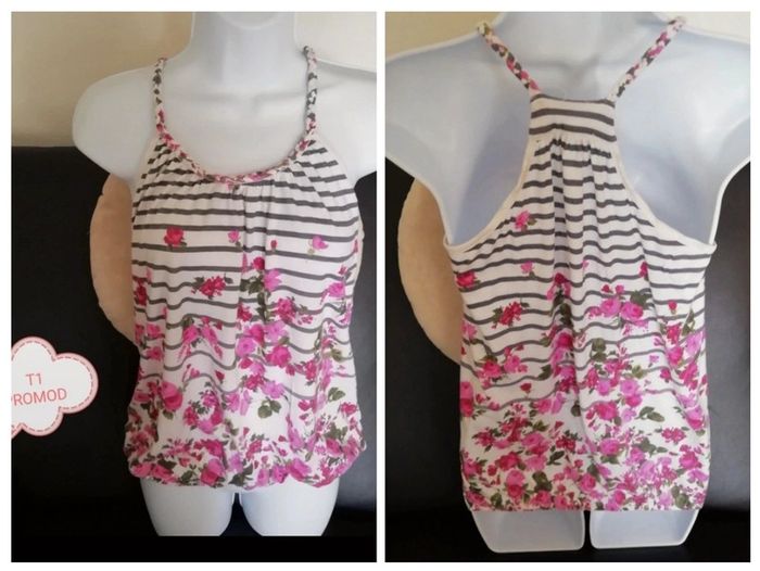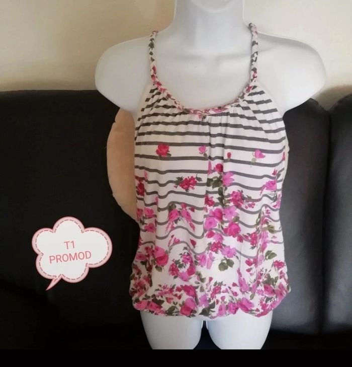 #patriciaponziotaille34 #patriciaponziotaille36 Débardeur femme, taille 1. Très bon état. Marque PROMOD. Couleur blanc, rose. Vous pouvez cliquer sur le lien ci-dessus pour voir tout mon 34 & 36